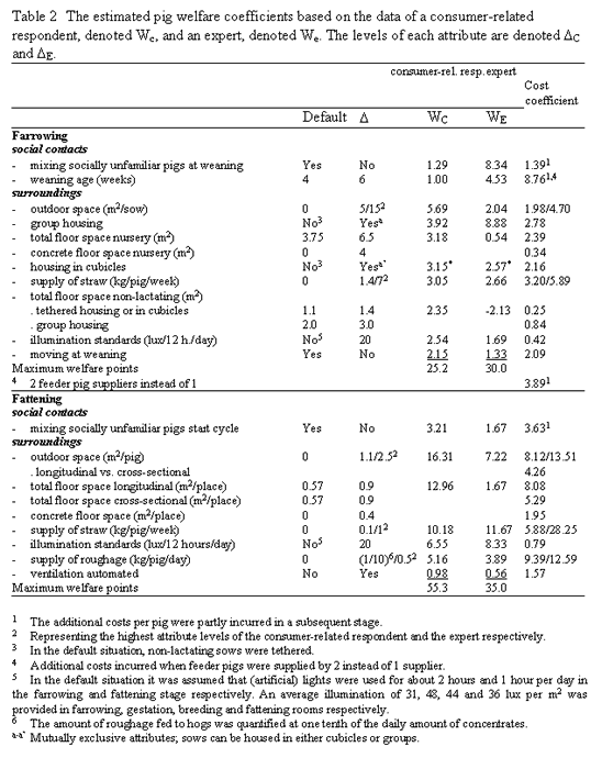 Table 2 The estimated pig welfare coefficients based on the data of a consumer-related respondent, denoted Wc, and an expert, denoted We. The levels of each attribute are denoted ΔC and ΔE.